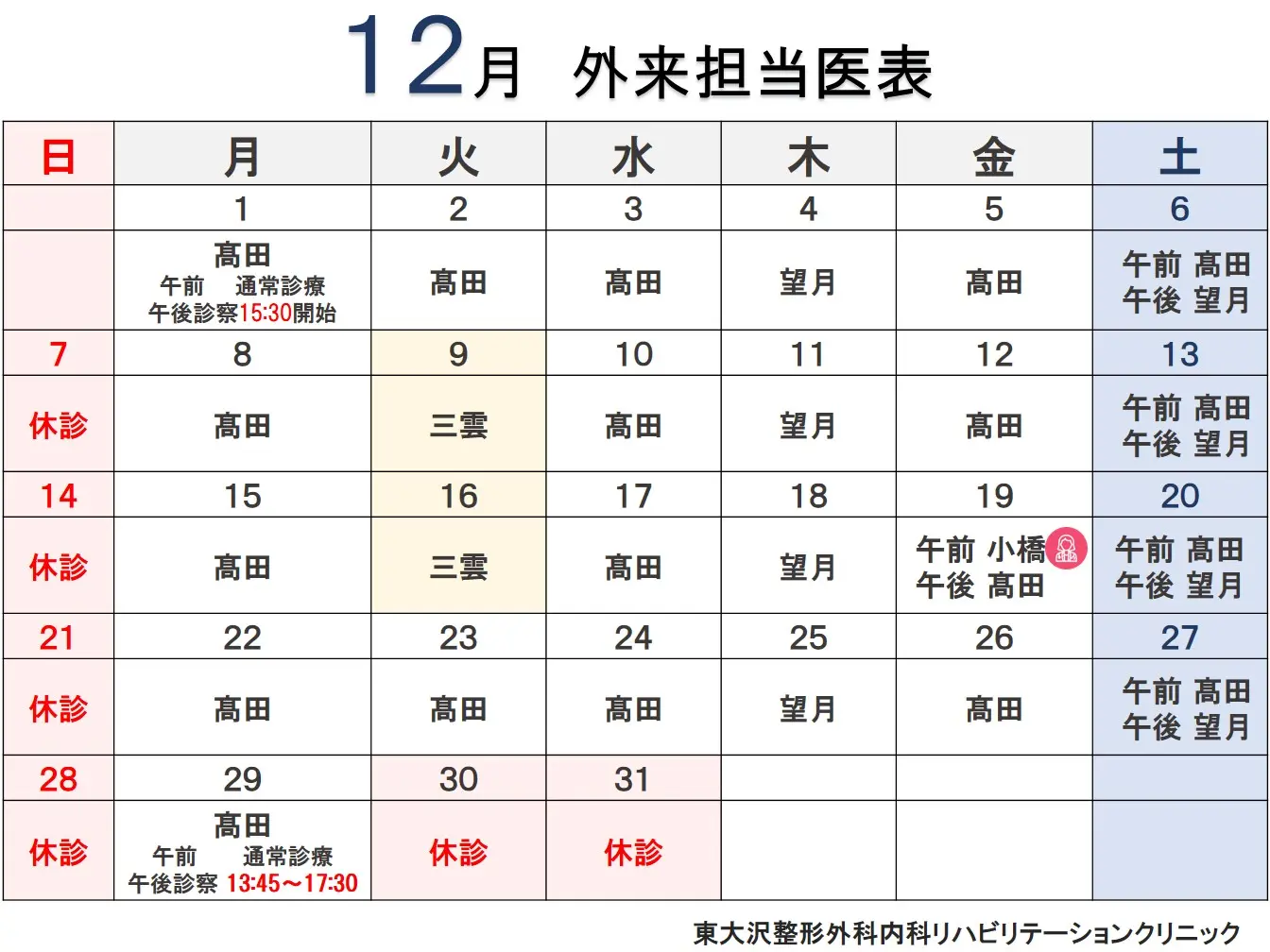 ※木曜日は診療開始・リハビリともに9:00~15:00(昼休みなし)