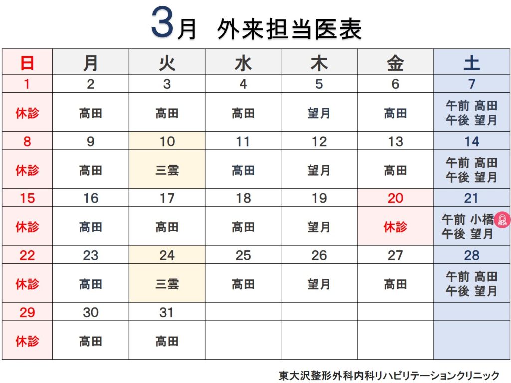 3/24(土) 三雲Dr(整形外科のみ)